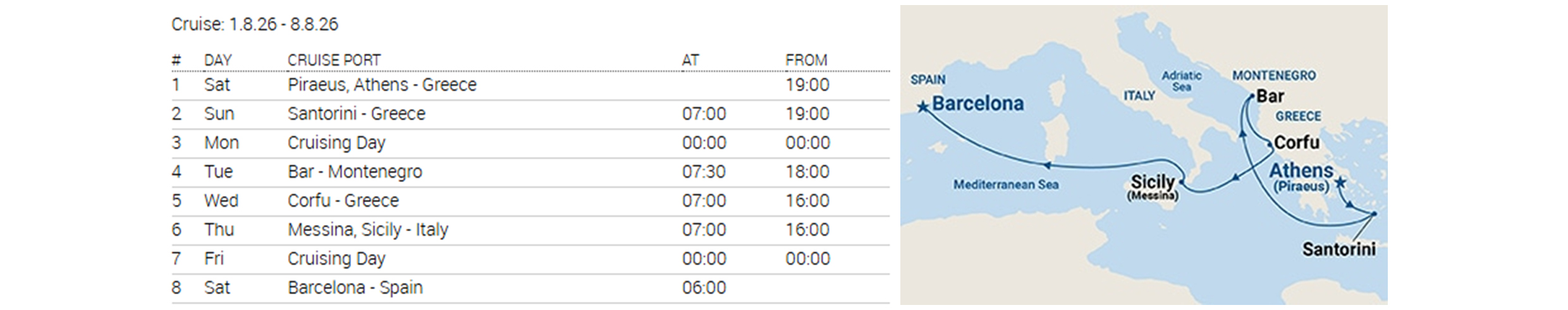After the cruise, your journey continues with 1 night in a 4★ hotel in Barcelona, including breakfast, as well as a short guided tour of the city—the perfect way to round off your Mediterranean adventure.